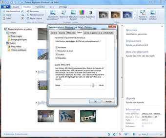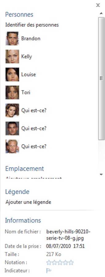 Cette dernière fonction, très prometteuse, peine à convaincre: Windows Live Galerie de Photos reconnaît des personnes présentes sur plusieurs photos seulement si l'éclairage est identique et si l'orientation du visage est la même. En général, si 2 photos d'un proche sont prises sous des jours différents, Windows Live Galerie de Photos ne fera pas le lien.